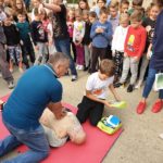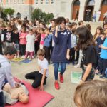 Postupak oživljavanja uz primjenu vanjske masaže srca i umjetnog disanja na lutki su započeli učenici OŠ Nikola Tesla koji su za to prošli edukaciju u Zavodu za hitnu medicinu PGŽ, a potom su primijenili i automatski vanjski defibrilator.