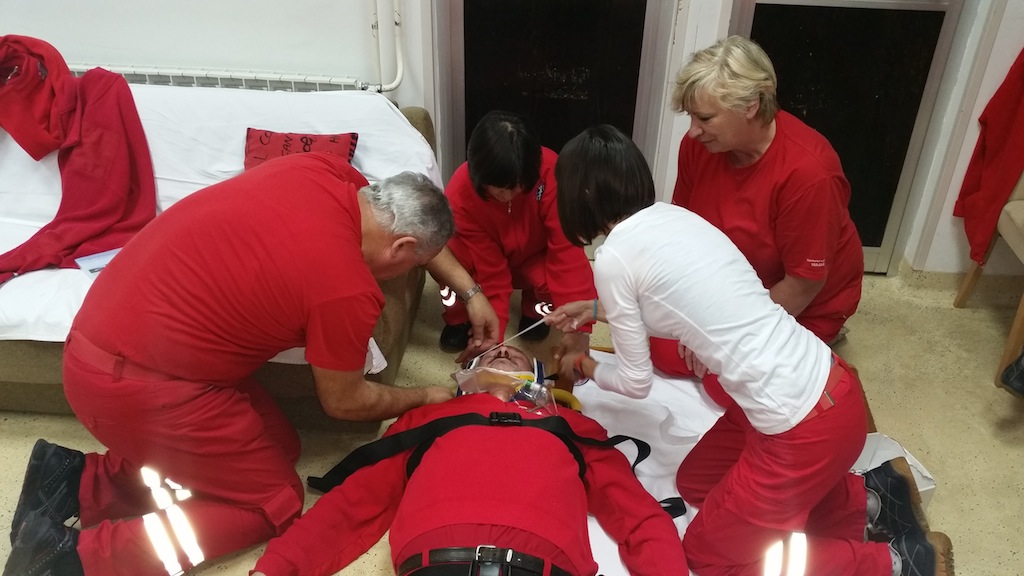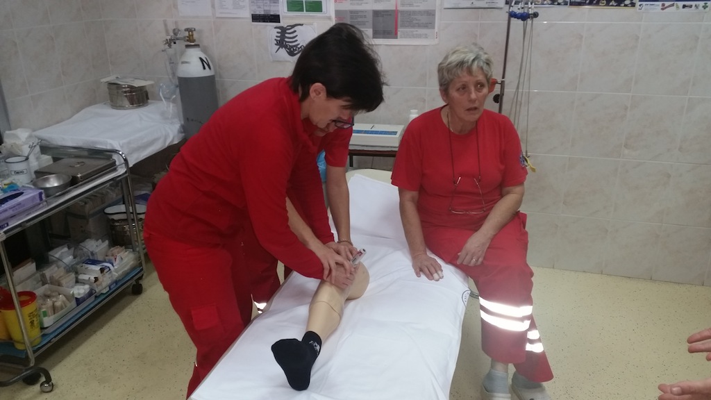 Djelatnicima ispostave Crikvenica, osim uobičajenog programa edukacije, prezentiran je i način otvaranja intraosalnog puta, što su oni i sami isprobavali na modelu.