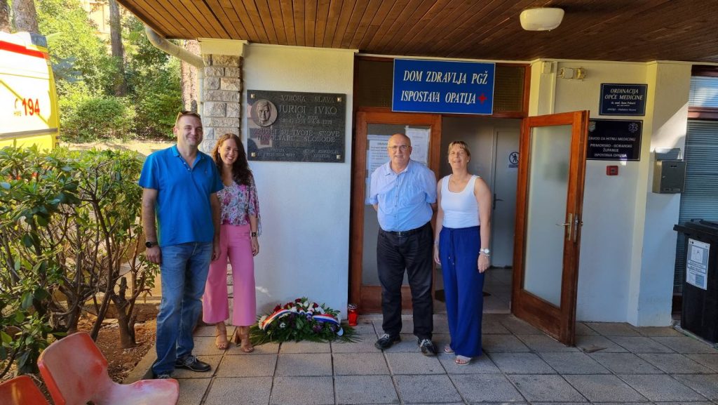 Tog dana delegacija Zavoda u istom sastavu položila je cvijeće kod spomen ploče na zgradi Hitne medicinske službe u ispostavi Opatija.