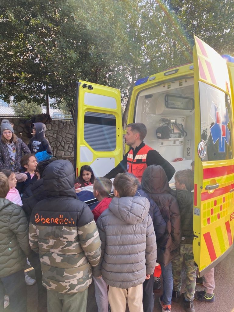 Tom prilikom je tim hitne studentima prezentirao opremu koju koristimo u svakodnevnom radu te upoznao studente s djelatnosti hitne medicine. 05.travnja 2023.g. u sklopu iste aktivnosti tim hitne medicinske službe posjetio je O.Š.Kantrida pri čemu je učenicima prezentirao vozilo i opremu koju koristimo u svakodnevnom radu.